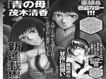 Pupa Manga: http://www.mangahere.com/manga/pupa/ Pupa manga’s creator Sayaka Motegi will begin serializing a new manga titled Ao no Haha (Mother of Blue) on the issue of Futabasha’s Monthly Action magazine and the new manga wi